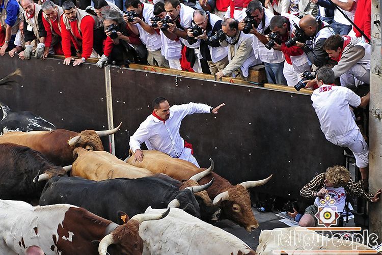 The Festival of San Fermin attracts thousands of visitors to Pamplona, Spain every year. The nine-day festival includes a carnival, bullfights and of course, the famous Running of the Bulls. Deeply traditional, it has been held since 1591, and remains a popular, if dangerous and controversial event. This year, dozens of runners and revelers have been injured, and one has been killed - a 27-year-old man who was gored in the neck, heart and lungs on Friday. Animal rights groups continue to level criticism toward the event, in which dozens of bulls run through small, packed streets toward a bullring where they will be killed during later bullfights. Collected here are some of the scenes from this year's Festival of San Fermin.