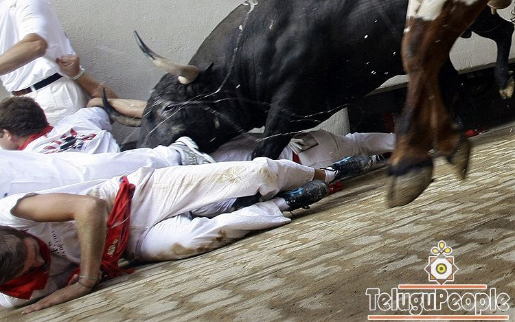 The Festival of San Fermin attracts thousands of visitors to Pamplona, Spain every year. The nine-day festival includes a carnival, bullfights and of course, the famous Running of the Bulls. Deeply traditional, it has been held since 1591, and remains a popular, if dangerous and controversial event. This year, dozens of runners and revelers have been injured, and one has been killed - a 27-year-old man who was gored in the neck, heart and lungs on Friday. Animal rights groups continue to level criticism toward the event, in which dozens of bulls run through small, packed streets toward a bullring where they will be killed during later bullfights. Collected here are some of the scenes from this year's Festival of San Fermin.