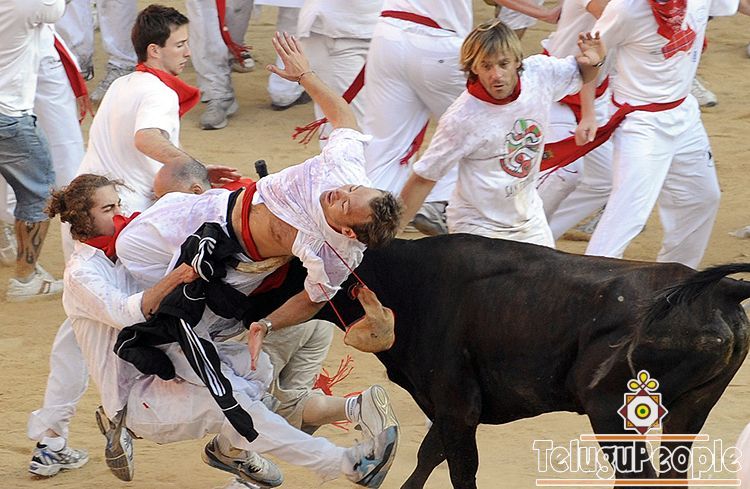 The Festival of San Fermin attracts thousands of visitors to Pamplona, Spain every year. The nine-day festival includes a carnival, bullfights and of course, the famous Running of the Bulls. Deeply traditional, it has been held since 1591, and remains a popular, if dangerous and controversial event. This year, dozens of runners and revelers have been injured, and one has been killed - a 27-year-old man who was gored in the neck, heart and lungs on Friday. Animal rights groups continue to level criticism toward the event, in which dozens of bulls run through small, packed streets toward a bullring where they will be killed during later bullfights. Collected here are some of the scenes from this year's Festival of San Fermin.