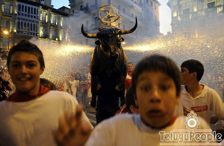The Festival of San Fermin attracts thousands of visitors to Pamplona, Spain every year. The nine-day festival includes a carnival, bullfights and of course, the famous Running of the Bulls. Deeply traditional, it has been held since 1591, and remains a popular, if dangerous and controversial event. This year, dozens of runners and revelers have been injured, and one has been killed - a 27-year-old man who was gored in the neck, heart and lungs on Friday. Animal rights groups continue to level criticism toward the event, in which dozens of bulls run through small, packed streets toward a bullring where they will be killed during later bullfights. Collected here are some of the scenes from this year's Festival of San Fermin.