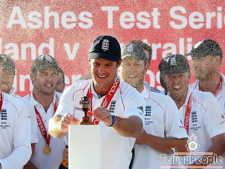 Andrew Strauss reaches for the urn as England begin to celebrate.