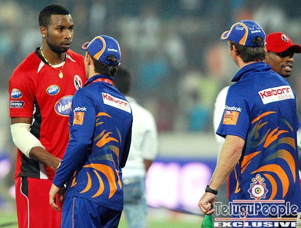 Adrian Barath (63) led a stunning power-hitting show as Trinidad & Tobago breezed into the semifinals of the Champions League after pipping Diamond Eagles by 24 runs in a high scoring League A match on Sunday.