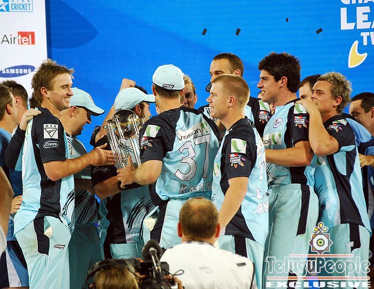Brett Lee could not have timed his allround performance better. Thanks to his brilliance, New South Wales Blues was crowned champion of the inaugural Airtel-Champions League Twenty20 championship with a clinical display to notch up a 41-run win over the crowd favourite Trinidad & Tobago in the final at Rajiv Gandhi Stadium here on Friday night. There was an air of excitement in the stands when Kieron Pollard walked to the middle with his team reeling at 68 for five in 10 overs. Clearly, Trinidad needed another special effort from the dazzling stroke-maker.