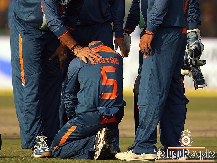 ...in the process landing a sickening pull to short-leg fielder Gautam Gambhir's neck.