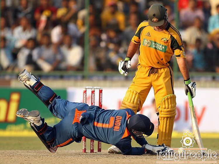 Ponting survived a dropped catch as Dhoni couldn't put in the dive quick enough...