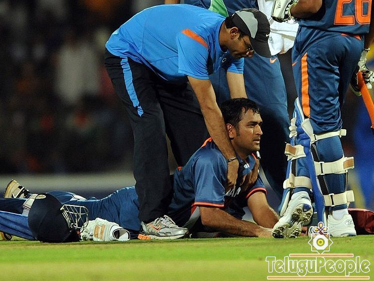 Dhoni had a small back problem at one stage of his innings...