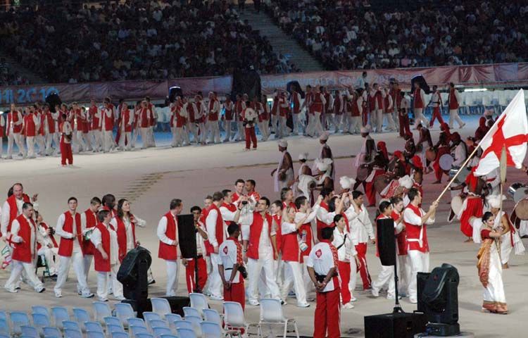The wait is finally over.As fireworks lit the sky,the biggest Commonwealth Games so far kicked off with a glittering ceremony at packed and sparkling Jawahar Lal Nehru Stadium in the Indian capital New Delhi on Sunday evening.