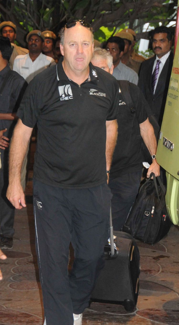 Indian and New Zealand Cricket teams arrive at Hyderabad for the second Test on Tuesday. INN Photos
