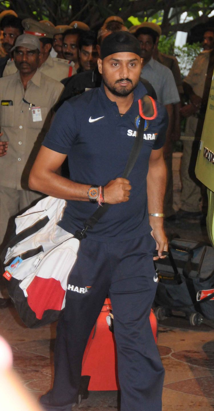 Indian and New Zealand Cricket teams arrive at Hyderabad for the second Test on Tuesday. INN Photos