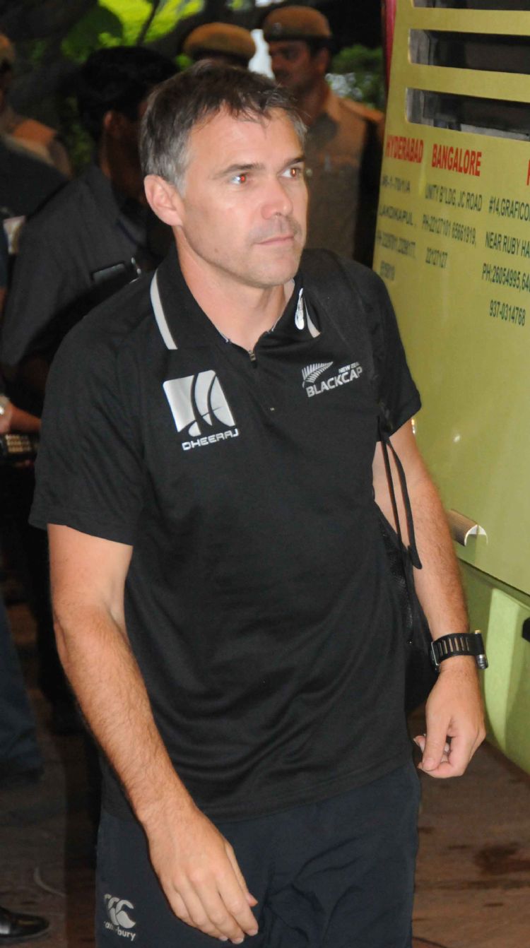 Indian and New Zealand Cricket teams arrive at Hyderabad for the second Test on Tuesday. INN Photos