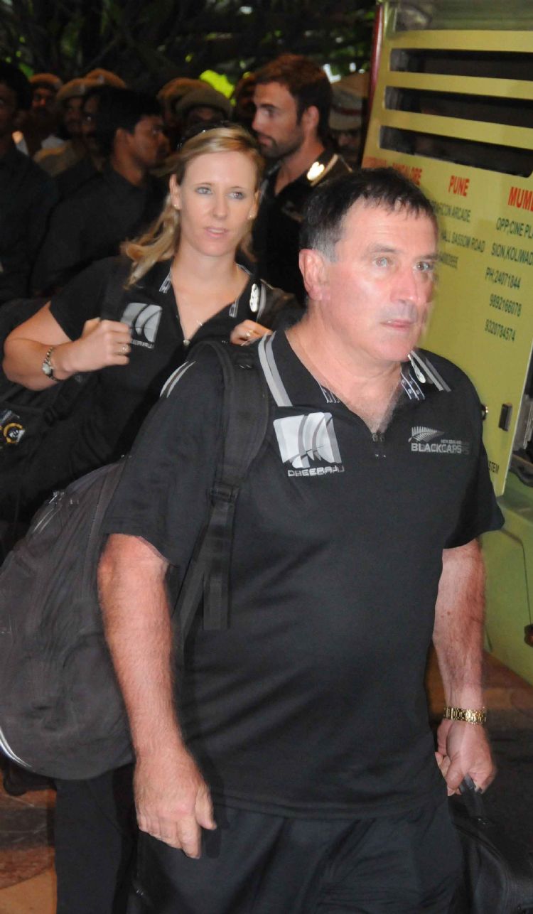 Indian and New Zealand Cricket teams arrive at Hyderabad for the second Test on Tuesday. INN Photos