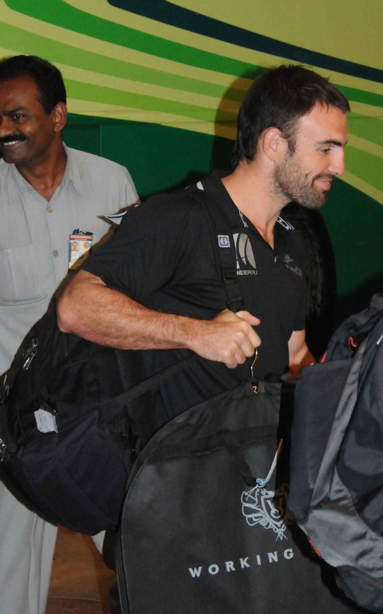 Indian and New Zealand Cricket teams arrive at Hyderabad for the second Test on Tuesday. INN Photos