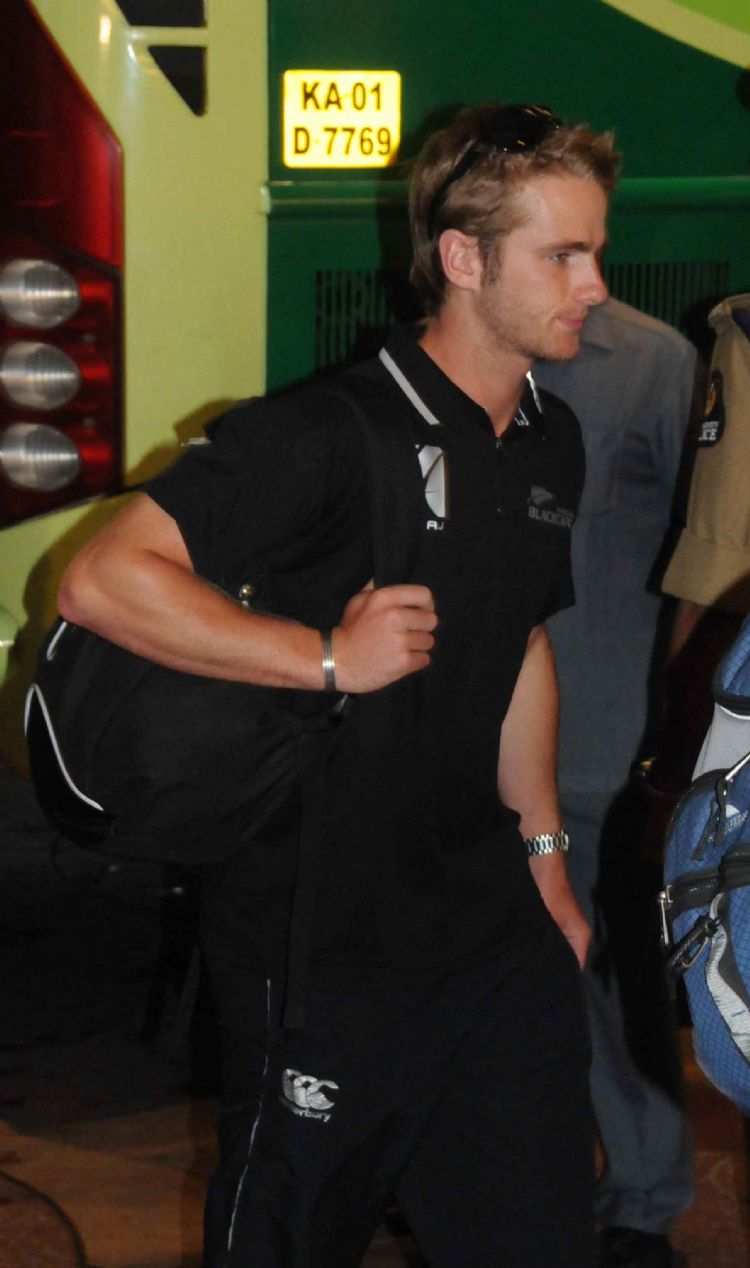 Indian and New Zealand Cricket teams arrive at Hyderabad for the second Test on Tuesday. INN Photos