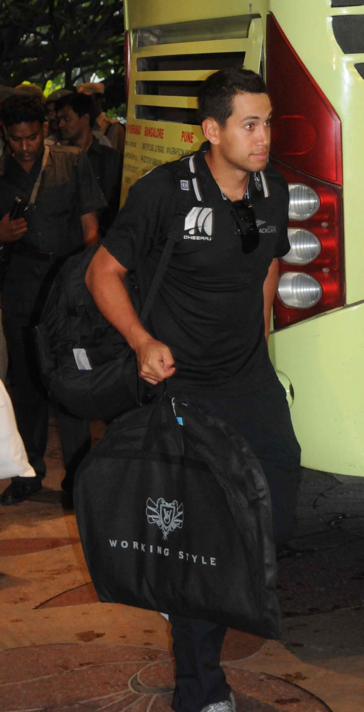 Indian and New Zealand Cricket teams arrive at Hyderabad for the second Test on Tuesday. INN Photos