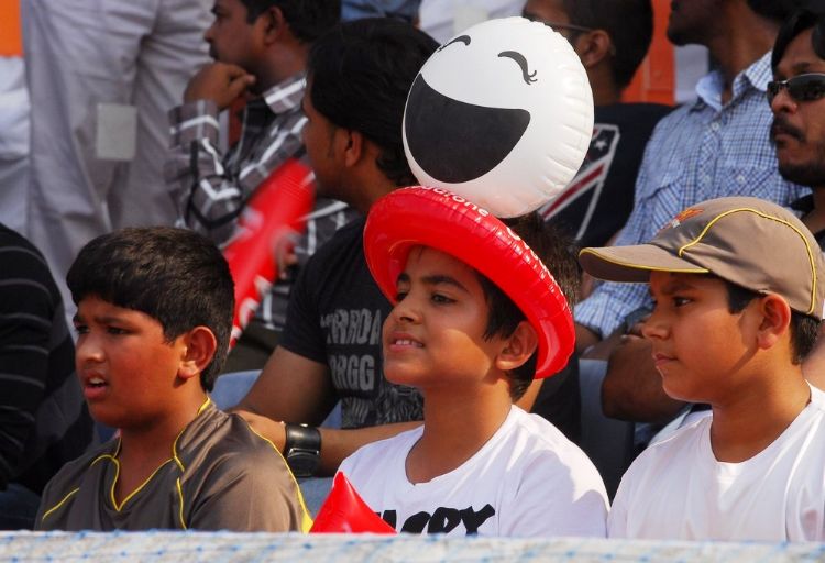 Actor Allu Sirish plays with actress Charmi at Uppal Stadium on Wednesday as Priya Mani looks on. The trio cheered Sunrisers Hyderabad which won its IPL clash with Mumbai Indians.