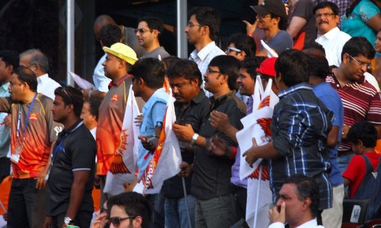 Actor Allu Sirish plays with actress Charmi at Uppal Stadium on Wednesday as Priya Mani looks on. The trio cheered Sunrisers Hyderabad which won its IPL clash with Mumbai Indians.