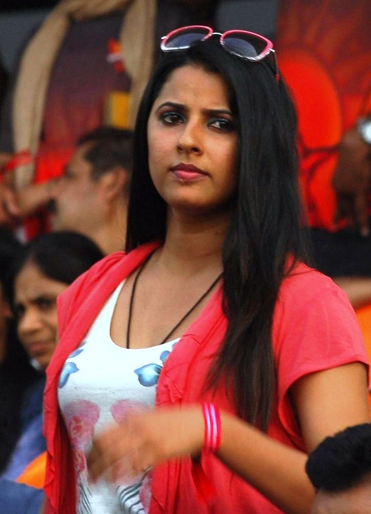 Actor Allu Sirish plays with actress Charmi at Uppal Stadium on Wednesday as Priya Mani looks on. The trio cheered Sunrisers Hyderabad which won its IPL clash with Mumbai Indians.