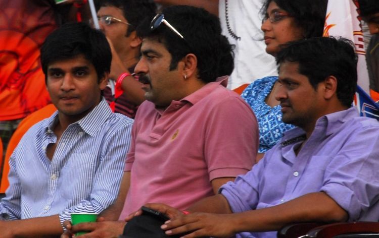 Actor Allu Sirish plays with actress Charmi at Uppal Stadium on Wednesday as Priya Mani looks on. The trio cheered Sunrisers Hyderabad which won its IPL clash with Mumbai Indians.
