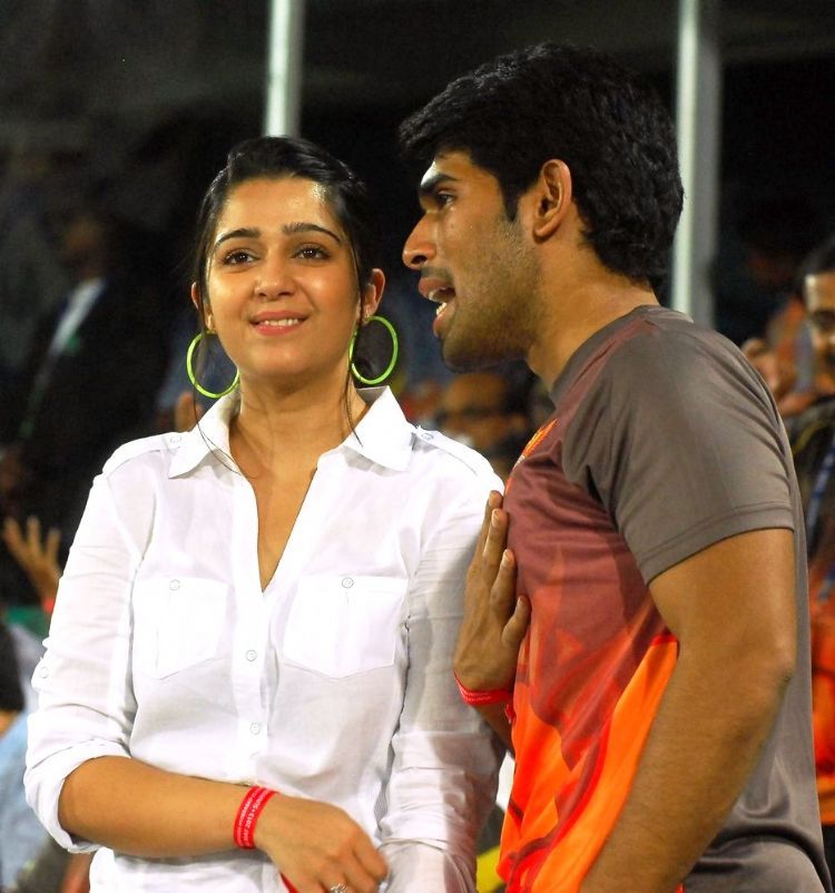 Actor Allu Sirish plays with actress Charmi at Uppal Stadium on Wednesday as Priya Mani looks on. The trio cheered Sunrisers Hyderabad which won its IPL clash with Mumbai Indians.