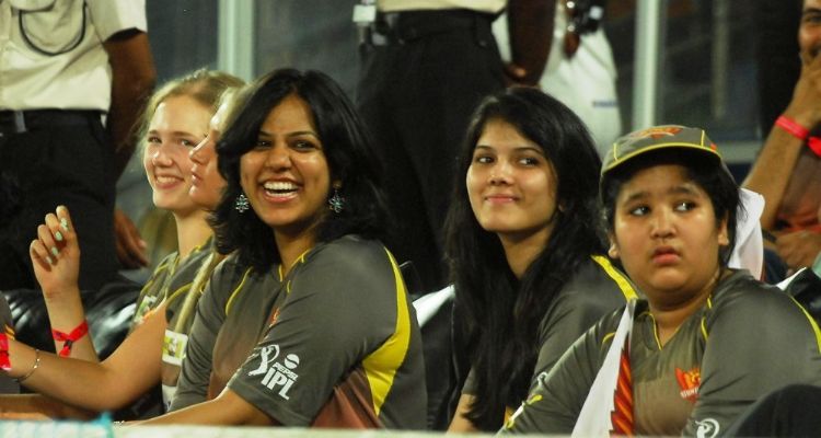 Actor Allu Sirish plays with actress Charmi at Uppal Stadium on Wednesday as Priya Mani looks on. The trio cheered Sunrisers Hyderabad which won its IPL clash with Mumbai Indians.