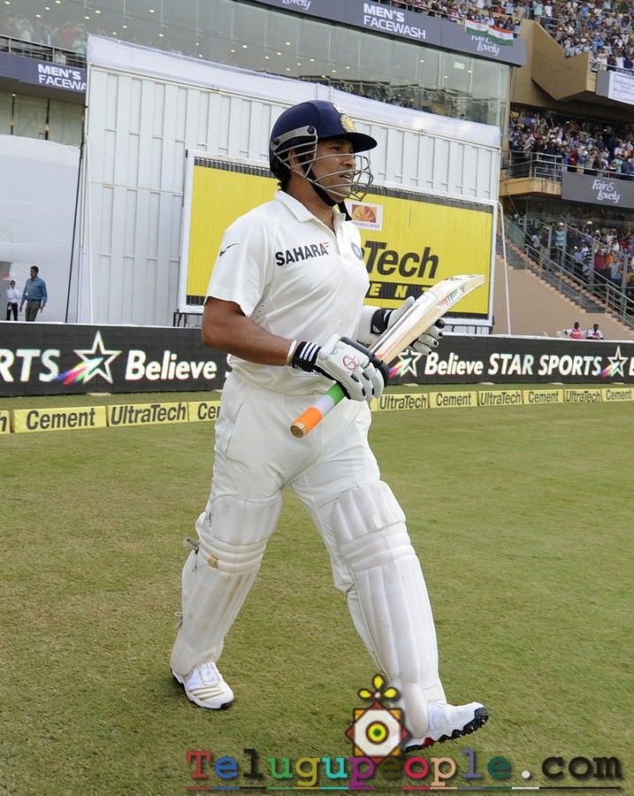 Sachin Tendulkar walks out to bat in his final Test India v West Indies 2nd Test Mumbai 1st day November 14 2013.