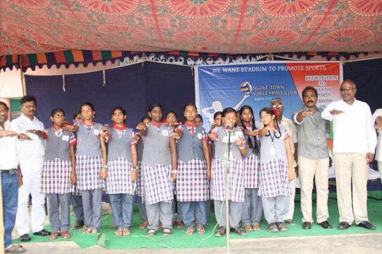 One day Women Invitation Volleyball Tournament was conducted at Kendriya Vidyalaya Grounds, Ongole on Thursday, October 2nd. AP Police Academy Asst Director Sri K Raja Sikhamani inaugurated the program. At the end of the tournament Rajasikhamani felicitated sports men and women who have brought fame to the Prakasam district in National and International games. TeluguPeople.com is a proud partner of this event.