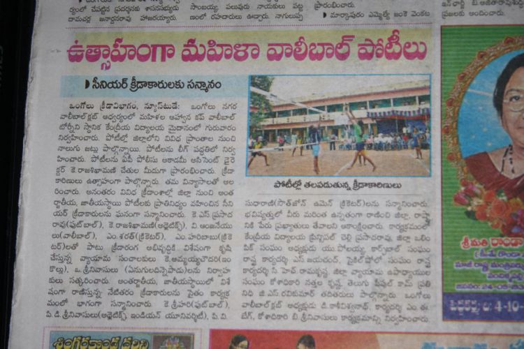 One day Women Invitation Volleyball Tournament was conducted at Kendriya Vidyalaya Grounds, Ongole on Thursday, October 2nd. AP Police Academy Asst Director Sri K Raja Sikhamani inaugurated the program. At the end of the tournament Rajasikhamani felicitated sports men and women who have brought fame to the Prakasam district in National and International games. TeluguPeople.com is a proud partner of this event.