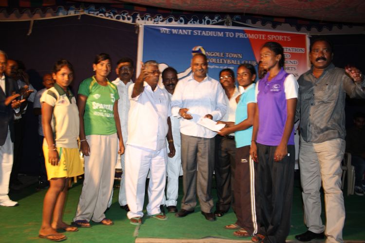 One day Women Invitation Volleyball Tournament was conducted at Kendriya Vidyalaya Grounds, Ongole on Thursday, October 2nd. AP Police Academy Asst Director Sri K Raja Sikhamani inaugurated the program. At the end of the tournament Rajasikhamani felicitated sports men and women who have brought fame to the Prakasam district in National and International games. TeluguPeople.com is a proud partner of this event.