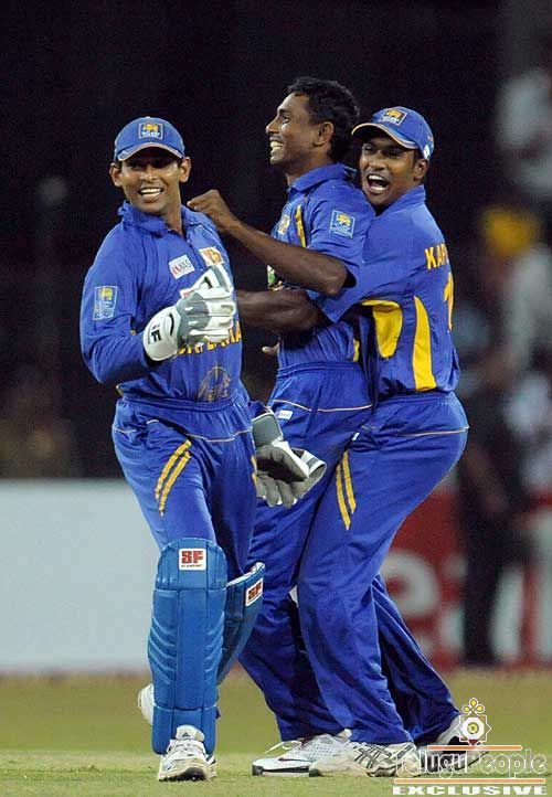 Sri Lankan players celebrate a wicket, Sri Lanka v India, Only T20 International, Colombo