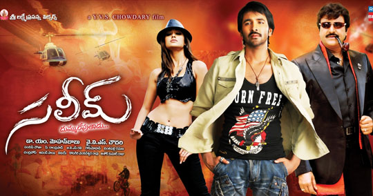 శరత్ సృష్టించిన 'దేవదాసు', ఏళ్ల నాటి సలీమ్ ప్రేమ గాథ తెలియని వారుండకపోవచ్చు. ఇద్దరివీ విఫల ప్రేమలే. విషాదాంత ముగింపులే. ఒకటి సాంఘిక నేపథ్యమైతే, మరొకటి చారిత్రక నేపథ్యం. నాటి కట్టుబాట్లు, అంతస్తుల తారతమ్యాలే వారి ప్రేమకి అడ్డుగోడలుగా నిలిచాయని చరిత్ర చెబుతుంది. కట్ చేస్తే...21వ శతాబ్దంలో దేవదాసు, సలీమ్ లు కోరుకున్న ప్రేమను దక్కించుకోలేనంత పిరికి వాళ్లు కాదు. ప్రేమలో ఎంత డీప్ గా మునగగలరో అంతే తేలిగ్గా సాహసాలు చేసయినా తమ ప్రేయసిని దక్కించుకుని పైకి తేలగలరు. తమ ప్రేమను విఫలం చేసేందుకు ప్రేయసిని ఖండాంతరాలకు పట్టుకుపోతే ఆగమేఘాల మీద అక్కడకు చేరుకుని ఆమెను దక్కించుకోవడం నేటి 'దేవదాసు' స్టయిల్. దర్శకుడు వై.వి.ఎస్. చౌదరి ఈ ఫార్ములాను బాగా ఒంటపట్టించుకుని మోడ్రన్ 'దేవదాసు'ను తెరపైకి తేస్తే జనం విరగబడి చూశారు. ఇప్పుడు 'సలీమ్' వంతు వచ్చింది. మళ్లీ సేమ్ ఫార్ములా. కాకపోతే నిన్నటి 'దేవదాసు' తన ప్రేయసి కోసం అమెరికా చుట్టొస్తే, ఇవాల్టి 'సలీమ్' ఇంకో అడుగు ముందుకు వేసి బ్యాంకాక్, యూరప్ వంటి పలు దేశాలు చుట్టేస్తాడు. పాశ్చాత్య సంస్కృతిలో పెరిగిన సలీమ్ అనుకోకుండా ఓ అమ్మాయిని చూసి ఆమె కోసం ఇండియా వచ్చి అక్కడి కుటుంబ బంధాలు, ఆప్యాయతలు, ప్రేమ మాధుర్యాన్ని అవగాహన చేసుకుని...తనలాగే పాశ్చాత్య సంస్కృతి మోజులో ఉన్న ఆ అమ్మాయికి కనువిప్పు కలిగించి ఆమెకు చేరువవుతాడు. వెస్ట్రన్ కల్చర్ కంటే భారతీయ సంస్కృతి ఎంతో గొప్పదని వైవిఎస్ చెప్పాలనుకోవడం అర్ధవంతమే. అయితే ఇదే వెస్ట్రన్ స్టయిల్ కు ఏమాత్రం తీసిపోని విధంగా ఆడపాత్రల చేత 'అంగాంగ' ప్రదర్శనలు చేయించి...జానాబెత్తెడు కొలతలు వేసి...లెక్కలు మిక్కిలి 'ఫ్లాష్ బ్యాక్'లతో 'దుమ్ము దులుపుతాను'అంటూ ప్రేక్షకుల 'దమ్ము' (సత్తా...సహనం) కు పరీక్ష పెట్టారు. అది ఏ మేరకనేది విశ్లేషించుకుంటే....