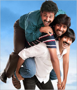 కర్ణ (రవితేజ), మల్లి (అల్లరి నరేష్), చందు (శివబాలాజీ) ప్రాణ స్నేహితులు. ఎవరి జీవితాశయాలు వారికి ఉంటాయి. కర్ణ తనను అమితంగా ప్రేమించే మరదలు మణెమ్మ (ప్రియమణి)ను పెళ్లాడాలనుకుంటాడు. అయితే మల్లి చేయి అందుకోవాలంటే అతనికి ప్రభుత్వ ఉద్యోగం తప్పనిసరని కాబోయే మామగారు (తనికెళ్ల భరణి) షరతు పెడతాడు. ఆ దిశగా కర్ణ ప్రయత్నాలు చేస్తుంటాడు. మల్లి విదేశాలకు వెళ్లిపోవాలనుకుంటాడు. ఎందుకు వెళ్లాలనుకున్నాడనే విషయంలో స్పష్టత లేనప్పటికీ (దర్శకుడు చెప్పలేదు) పాస్ పోర్ట్, వీసా కోసం ప్రయత్నాలు చేస్తుంటాడు. చందు బ్యాంకు రుణం తీసుకుని కంప్యూటర్ సెంటర్ పెట్టడం ద్వారా సెటిల్ కావాలనుకుంటాడు. కర్ణ చెల్లెలు పవిత్ర (అభినయ)ను కూడా ప్రేమిస్తాడు. ఆమె కూడా అతన్ని ఇష్టపడుతుంది. ఇలా సాగుతున్న ఈ మిత్రుల జీవితంలోకి ఓ కొత్త సమస్య వచ్చిపడుతుంది. మాజీ ఎంపి భవాని (రోజా) కొడుకైన సంతోష్ ఒకరోజు కర్ణ వద్దకు వస్తాడు. ఊహించని విధంగా ఒకరోజు అతను ఆత్మహత్యా ప్రయత్నం చేయడంతో మిత్రులంతా కలిసి కాపాడతారు. తాను ఓ ఫ్యాక్షనిస్టు (ముఖేష్ రుషి) కూతురు ప్రభను ప్రేమించాననీ, ఇది పెద్దలకు ఇష్టం లేదనీ అతను తన ప్రేమకథను వెల్లడిస్తాడు. ఆ ప్రేమజంటను కలపడం ప్రమాదంతో కూడుకున్నదే అయినా మిత్ర త్రయం అందుకు సిద్ధపడుతుంది. ఫ్యాక్షనిస్ట్ ఫ్యామిలీ నుంచి ప్రభను ఎత్తుకు వచ్చే ప్రయత్నంలో కర్ణ కంటిపై పొడవాటి కత్తి చీరుకుపోతుంది. మల్లిని ఒకడు పొడవాటి ట్యూబ్ తో కొట్టడంతో అతి చెవికి బలంగా తాకి వినికిడి శక్తి కోల్పోతాడు. చందు కాలిపై ఓ లారీ ఎక్కడంతో అది నుజ్జునుజ్జు అయిపోతుంది. సంతోష్, ప్రభకు పెళ్లి చేసి అజ్ఞాత ప్రదేశానికి కర్ణ పంపించేస్తాడు. మరోవైపు కర్ణ, అతని మిత్రులు పోలీసు కేసులో చిక్కుకోవడంతో తన కూతుర్ని కర్ణకు ఇచ్చి పెళ్లి చేసేందుకు మణెమ్మ తండ్రి ససేమిరా అంటాడు. మరోవైపు సంతోష్-ప్రభ జంట నాలుగురోజుల ముచ్చట తీరిన తర్వాత గొడవలు పడి విడాకలు వరకూ వెళ్తారు. ఎవరి ఇంటికి వాళ్లు వెళ్లిపోయి మళ్లీ పెళ్లికి సిద్ధపడిపోతారు. దీంతో తమ త్యాగానికి విలువ లేకపోయిందని గ్రహించిన మిత్రత్రయం ఆ జంటకు బుద్ధి చెప్పేందుకు ఎలాంటి నిర్ణయం తీసుకుందనే మిగతా కథ.