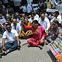 TV Parirakshna Samithi members staging dharna infront of MAA TV channel office