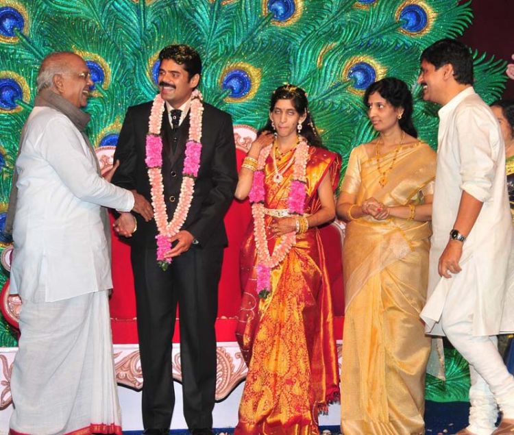 Director S.V.Krishnareddy’s daughter Vijaya Lakshmi entered into wedlock with Dr. G Rajasekhar Reddy. A grand wedding reception was held on Sunday the 14th November at Hitex Novotel, Madhapur. Celebrities like Nara Chandra Babu Naidu, Akkineni Nageswara Rao, Dr.D.Ramanaidu, Superstar Krishna with Vijays Nirmala, Nandamuri Bala Krishna, Ram, Sai Kumar, Puri Jagan, Allu Arvind, Lakshmi Manchu, Uttej, VV Vinayak, Srikanth, Brahmanandam, Krishnam Raju, ETV Suman, Chandrabose, Suchitra, Satyanand, Bhogavalli Prasad, KS Rama Rao, C Kalyan, Venu Madhav, Former Assembly Speaker Suresh Reddy, Murali Mohan,Vijaya Bhaskar, Diwakar Babu, Jayasudha, Roja, Kishore Rathi, Sivaji Raja, A Kodandarami Reddy, Ali, Tanikella Bharani, Ambati Rambabu, Rama Krishna Goud, Chota K Naidu, KVP Ramachandra Rao etc. graced the event and blessed the new couple.