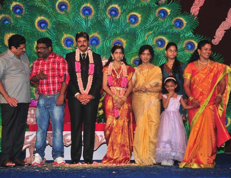 Director S.V.Krishnareddy’s daughter Vijaya Lakshmi entered into wedlock with Dr. G Rajasekhar Reddy. A grand wedding reception was held on Sunday the 14th November at Hitex Novotel, Madhapur. Celebrities like Nara Chandra Babu Naidu, Akkineni Nageswara Rao, Dr.D.Ramanaidu, Superstar Krishna with Vijays Nirmala, Nandamuri Bala Krishna, Ram, Sai Kumar, Puri Jagan, Allu Arvind, Lakshmi Manchu, Uttej, VV Vinayak, Srikanth, Brahmanandam, Krishnam Raju, ETV Suman, Chandrabose, Suchitra, Satyanand, Bhogavalli Prasad, KS Rama Rao, C Kalyan, Venu Madhav, Former Assembly Speaker Suresh Reddy, Murali Mohan,Vijaya Bhaskar, Diwakar Babu, Jayasudha, Roja, Kishore Rathi, Sivaji Raja, A Kodandarami Reddy, Ali, Tanikella Bharani, Ambati Rambabu, Rama Krishna Goud, Chota K Naidu, KVP Ramachandra Rao etc. graced the event and blessed the new couple.