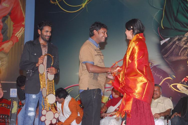 The audio launch of Manchu Vishnu’s ‘Vastadu Naa Raju’ was held at Layola College in Vijayawada on December 10th, 2010. K Raghavendra Rao, Dr Mohan Babu, Budha Prasad, Devineni Nehru, Lagadapati Rajagopal, Yarlagadda Lakshmi Prasad, Vishnu, Tapsee and others witnessed the grand event. Mohan Babu released the audio CDs and presented its first copy to K Raghavendra Rao.