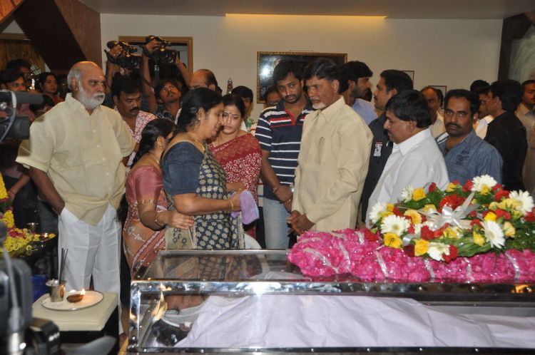 Tollywood bids tearful adieu to EVV: Shocked film fraternity thronged the residence of well known film producer-director EVV Satyanarayana, who died of a massive cardiac arrest in a city hospital late on Friday night, to pay their last respects.