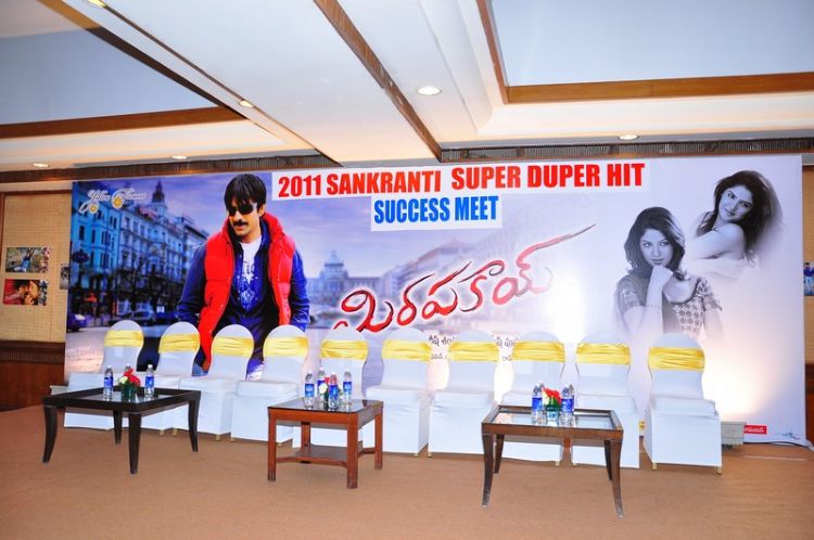 Ravi Teja, Deeksha Seth, Richa Gangopadyaya at Mirapakay success meet held at hotel Taj Deccan. Ramesh Reddy, Ram Prasad, Ali, Suneel, Thaman, Goutham Raju, Brahmaji too attended this event.