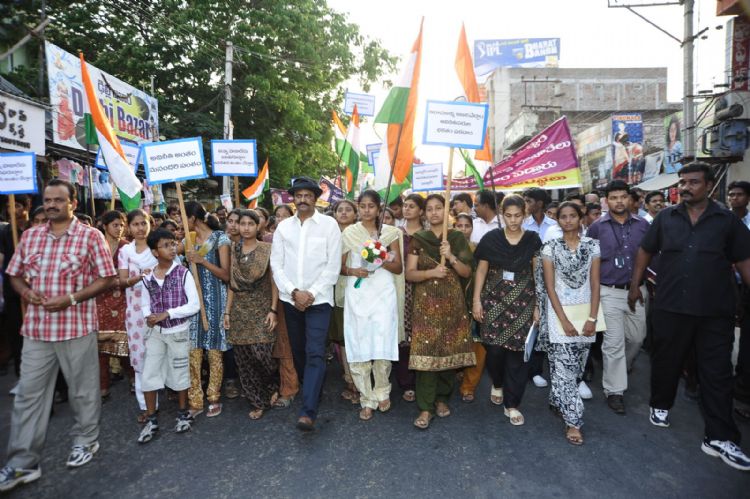 FOR A CAUSE: Actor M. Mohan Babu leading a ‘padayatra' of students expressing solidarity with social activist Anna Hazare, in Tirupati on Friday.