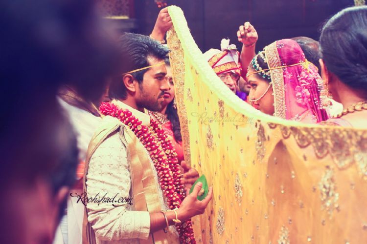Film celebrities and prominent personalities from political and business field blessed actor Ram Charan Teja, who tied the nuptical knot with childhood sweetheart Upasana Kamineni, at Temple trees, Moinabad on Friday morning.