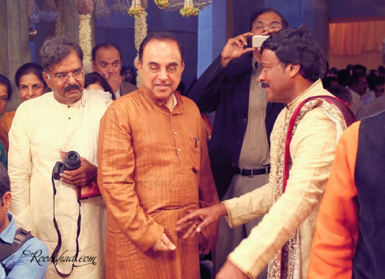 Film celebrities and prominent personalities from political and business field blessed actor Ram Charan Teja, who tied the nuptical knot with childhood sweetheart Upasana Kamineni, at Temple trees, Moinabad on Friday morning.