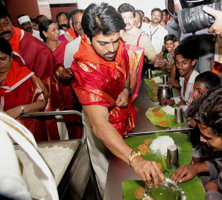 The newly wed celebrity couple, actor Ramcharan Tej and his wife Upasana took part in the Srivari Seva voluntary service at Matrusri Tarigonda Vengamamba Nityannaprasada Bhavan at Tirumala on Saturday.