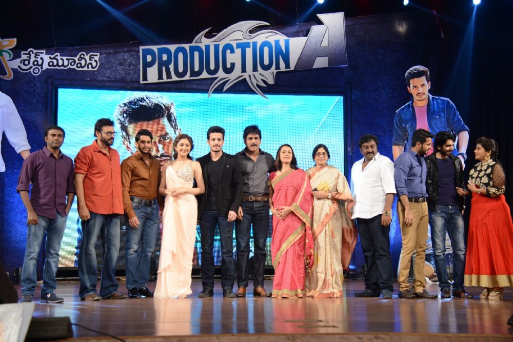Launch of Akhil Akkineni and his debut film was held at a grand event in Shilpa Kala Vedika. Akkineni Nagarjuna and Amala introduced their son to the Telugu audience. Actor Nithiin is producing Akhil's debut flick and VV Vinayak is the director. Bollywood star Dilip Kumar's grand daughter Sayessha is making her Tollywood debut with this movie.