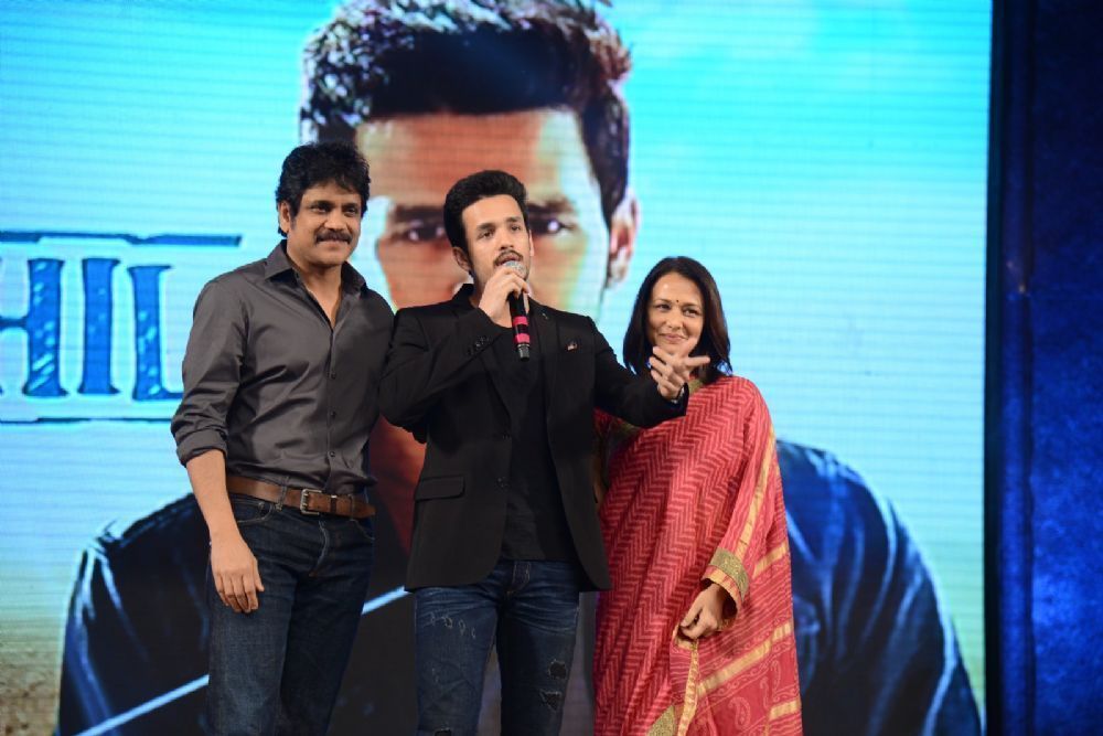 Launch of Akhil Akkineni and his debut film was held at a grand event in Shilpa Kala Vedika. Akkineni Nagarjuna and Amala introduced their son to the Telugu audience. Actor Nithiin is producing Akhil's debut flick and VV Vinayak is the director. Bollywood star Dilip Kumar's grand daughter Sayessha is making her Tollywood debut with this movie.
