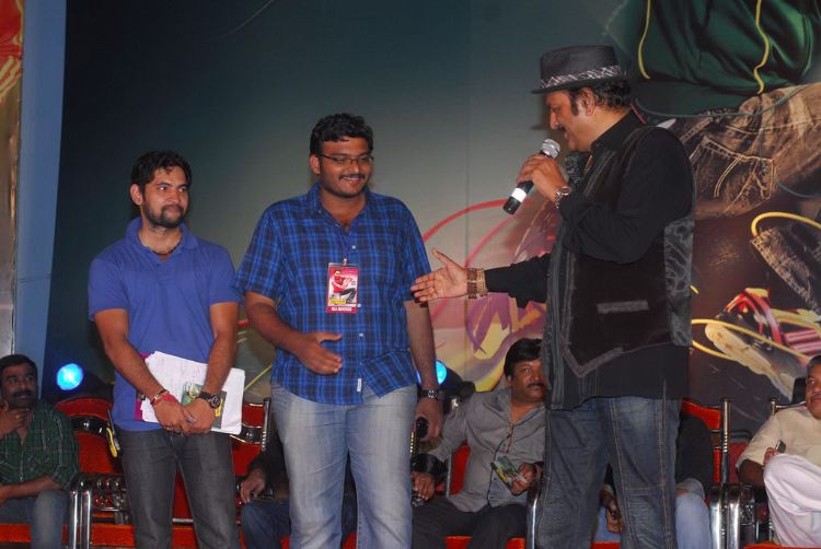 The audio launch of Manchu Vishnu’s ‘Vastadu Naa Raju’ was held at Layola College in Vijayawada on December 10th, 2010. K Raghavendra Rao, Dr Mohan Babu, Budha Prasad, Devineni Nehru, Lagadapati Rajagopal, Yarlagadda Lakshmi Prasad, Vishnu, Tapsee and others witnessed the grand event. Mohan Babu released the audio CDs and presented its first copy to K Raghavendra Rao.