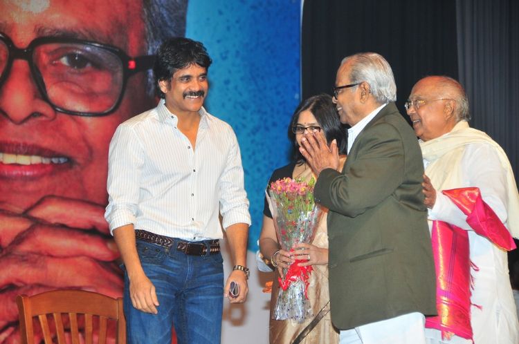Veteran filmmaker Dr. K Balachander was honoured with prestigious ANR National Award yesterday at Silpa Kala Vedika . CM Kiran Kumar Reddy, ANR, Veerappa Moily and other dignitaries presented him a Memento and a cash prize of Rs. 5 lakhs. Akkineni family members like Nagarjuna, Amala, Naga Susheela, Naga Chaitanya, Akhil, Sumanth and others were present. Indian Idol Sreeram Chandra was the prime attraction of the day and he entertained the audience with some old Telugu songs.