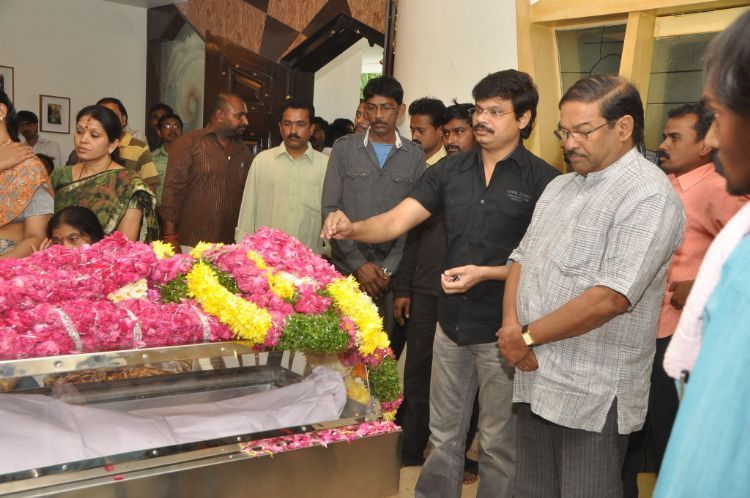Tollywood bids tearful adieu to EVV: Shocked film fraternity thronged the residence of well known film producer-director EVV Satyanarayana, who died of a massive cardiac arrest in a city hospital late on Friday night, to pay their last respects.