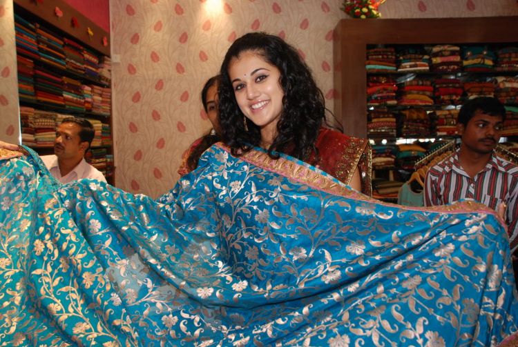 Actress Tapsee Pannu launches Sreeja Fashions showroom in Hyderabad on Monday.