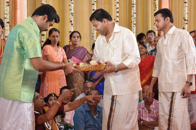 The engagement ceremony and the wedding reception of actors Sneha and Prasanna was held at Srivari Kalyana Mandapam. Sneha and Prasanna exchanged garlands and rings in a traditional ceremony. The blushing bride and the charming groom looked beautiful in their expensive and dazzling costumes. The function was attended by their family and friends.