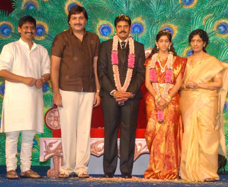 Director S.V.Krishnareddy’s daughter Vijaya Lakshmi entered into wedlock with Dr. G Rajasekhar Reddy. A grand wedding reception was held on Sunday the 14th November at Hitex Novotel, Madhapur. Celebrities like Nara Chandra Babu Naidu, Akkineni Nageswara Rao, Dr.D.Ramanaidu, Superstar Krishna with Vijays Nirmala, Nandamuri Bala Krishna, Ram, Sai Kumar, Puri Jagan, Allu Arvind, Lakshmi Manchu, Uttej, VV Vinayak, Srikanth, Brahmanandam, Krishnam Raju, ETV Suman, Chandrabose, Suchitra, Satyanand, Bhogavalli Prasad, KS Rama Rao, C Kalyan, Venu Madhav, Former Assembly Speaker Suresh Reddy, Murali Mohan,Vijaya Bhaskar, Diwakar Babu, Jayasudha, Roja, Kishore Rathi, Sivaji Raja, A Kodandarami Reddy, Ali, Tanikella Bharani, Ambati Rambabu, Rama Krishna Goud, Chota K Naidu, KVP Ramachandra Rao etc. graced the event and blessed the new couple.