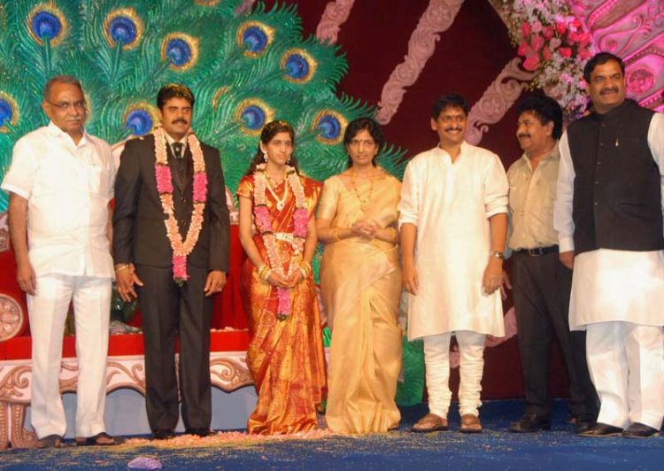 Director S.V.Krishnareddy’s daughter Vijaya Lakshmi entered into wedlock with Dr. G Rajasekhar Reddy. A grand wedding reception was held on Sunday the 14th November at Hitex Novotel, Madhapur. Celebrities like Nara Chandra Babu Naidu, Akkineni Nageswara Rao, Dr.D.Ramanaidu, Superstar Krishna with Vijays Nirmala, Nandamuri Bala Krishna, Ram, Sai Kumar, Puri Jagan, Allu Arvind, Lakshmi Manchu, Uttej, VV Vinayak, Srikanth, Brahmanandam, Krishnam Raju, ETV Suman, Chandrabose, Suchitra, Satyanand, Bhogavalli Prasad, KS Rama Rao, C Kalyan, Venu Madhav, Former Assembly Speaker Suresh Reddy, Murali Mohan,Vijaya Bhaskar, Diwakar Babu, Jayasudha, Roja, Kishore Rathi, Sivaji Raja, A Kodandarami Reddy, Ali, Tanikella Bharani, Ambati Rambabu, Rama Krishna Goud, Chota K Naidu, KVP Ramachandra Rao etc. graced the event and blessed the new couple.